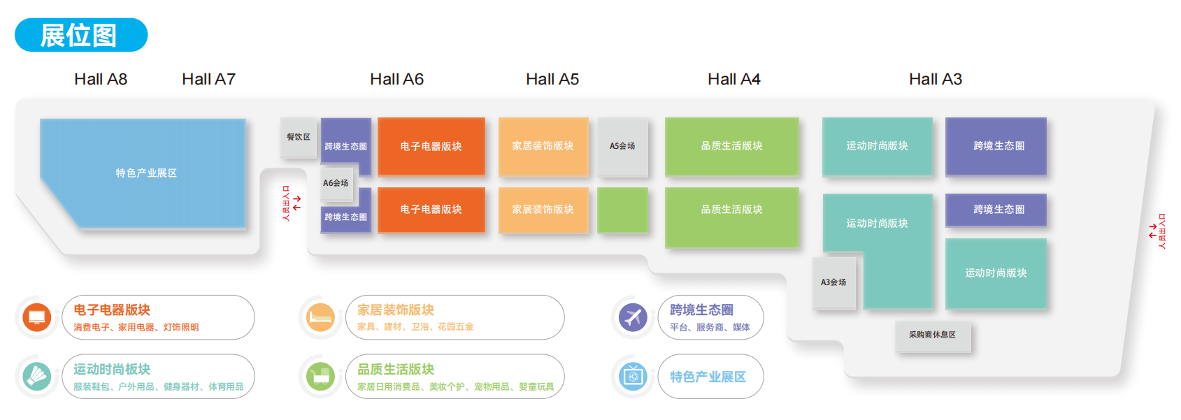 鞋服箱包、综合体育用品、家具建材装饰、家居日用消费品、3C电子数码家用电器、母婴玩具宠物用品、礼品赠品眼镜及印刷包装、健康美容美妆、花园五金汽摩配件等